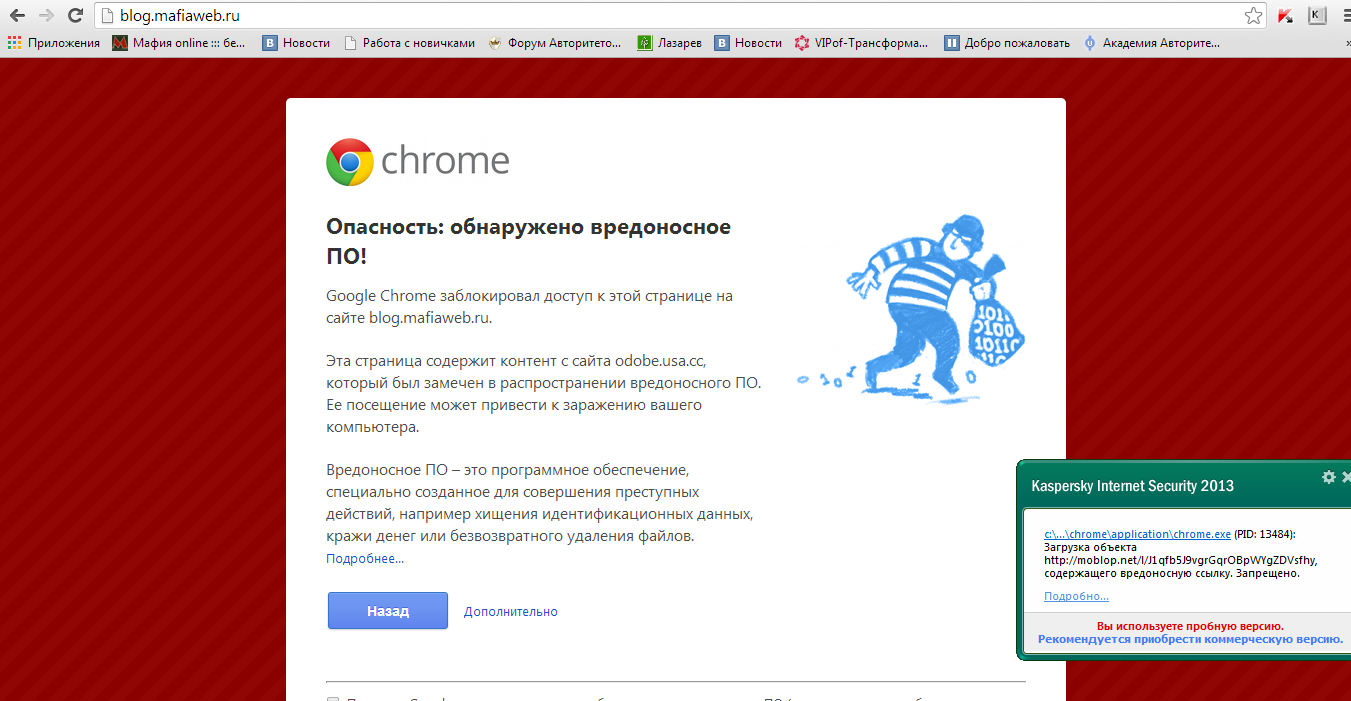 Сегодня с утра решил почитать Блог мафии и тут выскакивает вот такое и начинает ругаться Касперский.