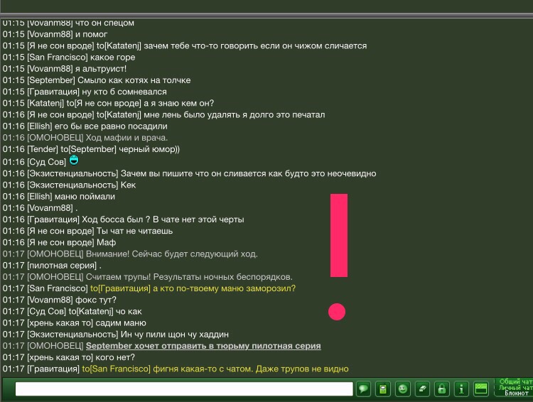 Проблема в том, что если мафка запущена в 2 браузерах/окнах/устройствах одновременно то половина чата идет в одно окно, а половина в другое. Это нормально, это фича.грешила на это да,но дело в том,что окно было одно и на одном устройстве...