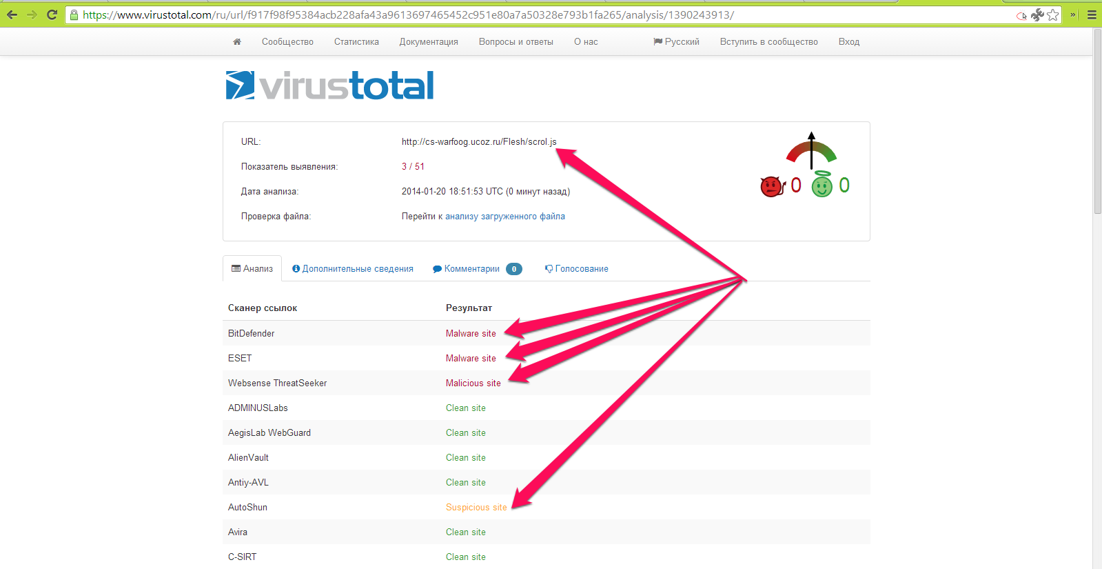 Либо у Вас ложное срабатывание, либо на их сайте проблема, которую не находят антивирусы у других. Ни в том, ни в другом случае мы ничем помочь не можем.
